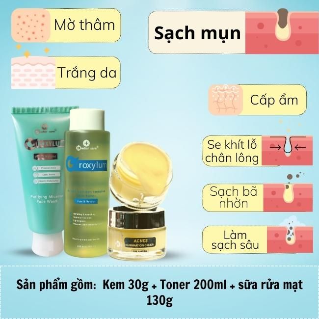 Bộ Tri Mụn ẩn , Mụn đầu đen, Mụn thâm Doctor Care dịu nhẹ dành cho nam nữ da dầu mụn ( Kem 30g + Toner 200ml +sữa rửa mặt 130g)